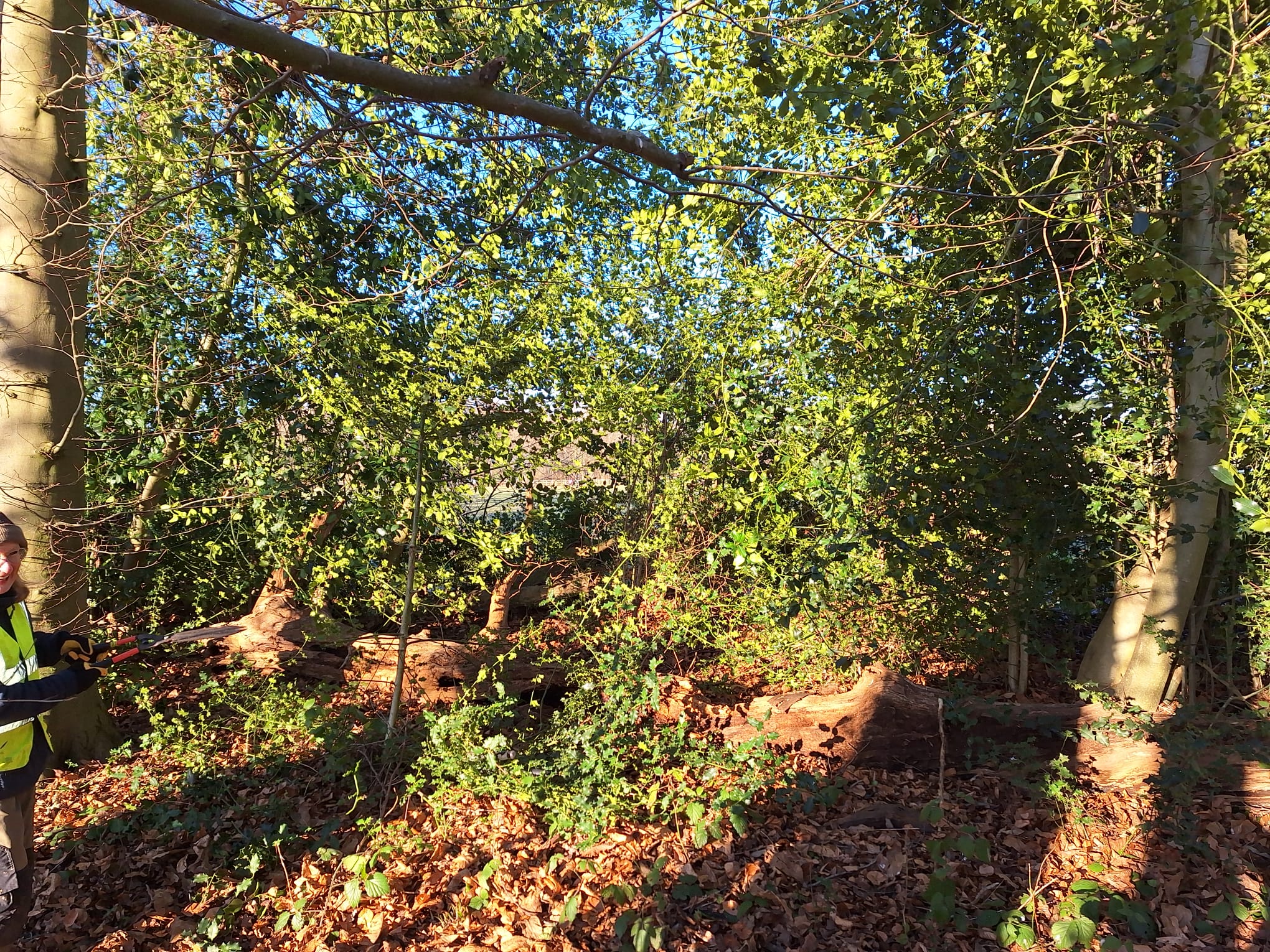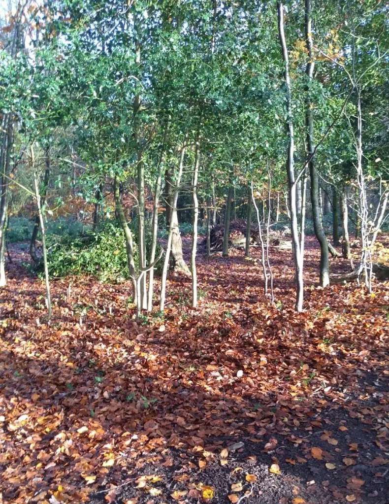 November and December are good months to thin some of the dense bits of holly in the woods as there are no birds nesting. We avoid removing holly that has berries so we don’t deprive the birds of a food source.