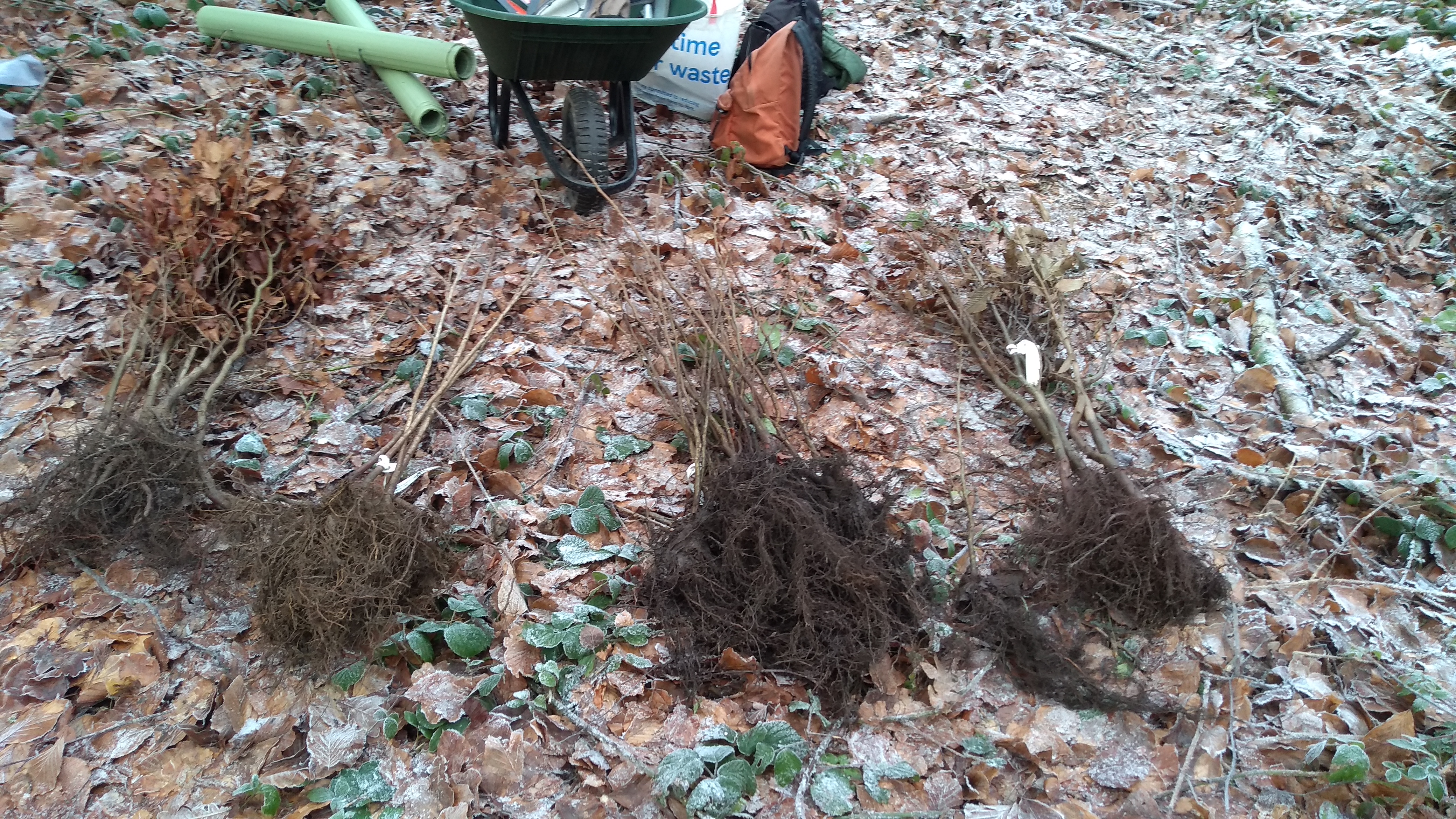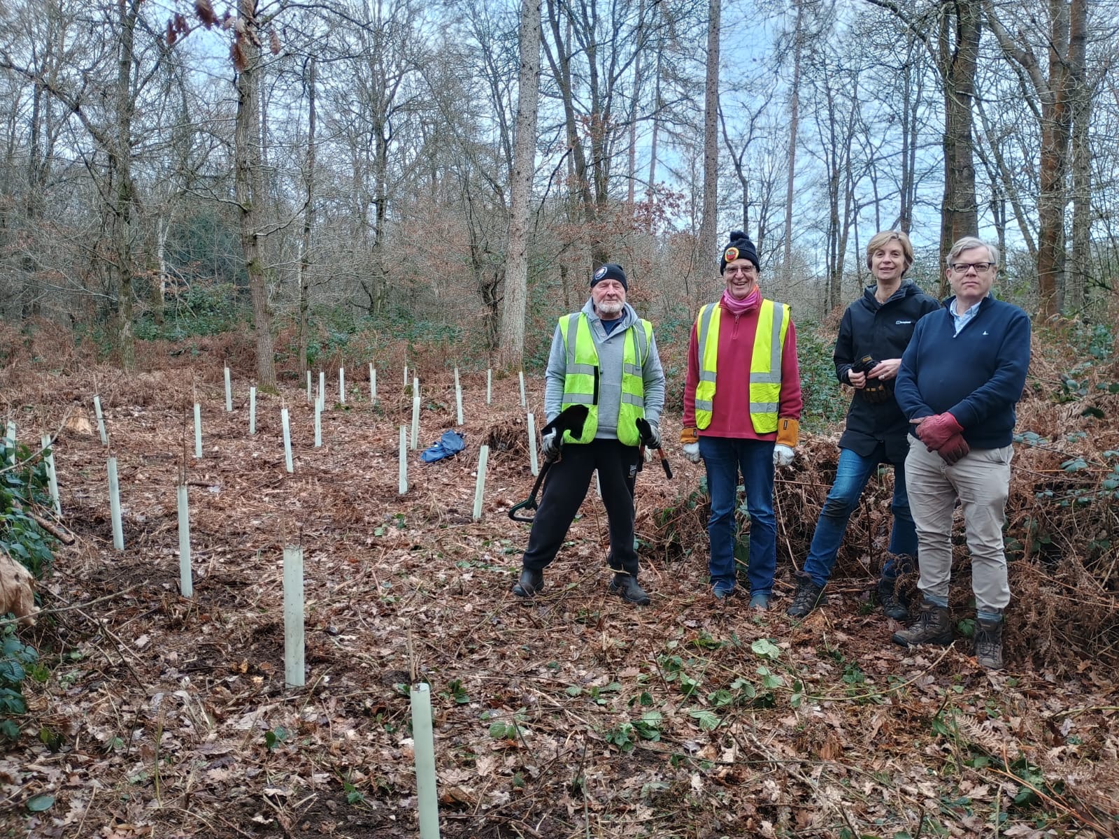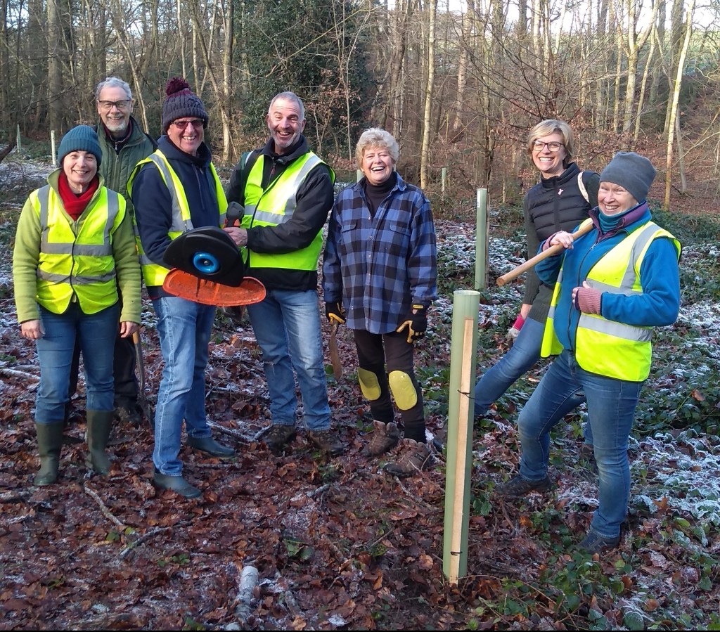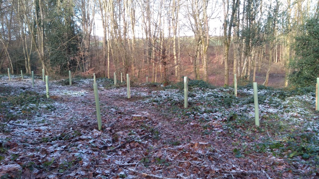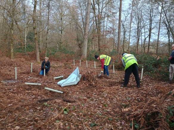 This January, on a frosty morning, we were met in the woods by Alex Laurie, Principal Tree and Landscape Officer at Three Rivers District Council. He had 40 broadleaf trees for us to plant in an area of the woods which has had most of the larch removed.