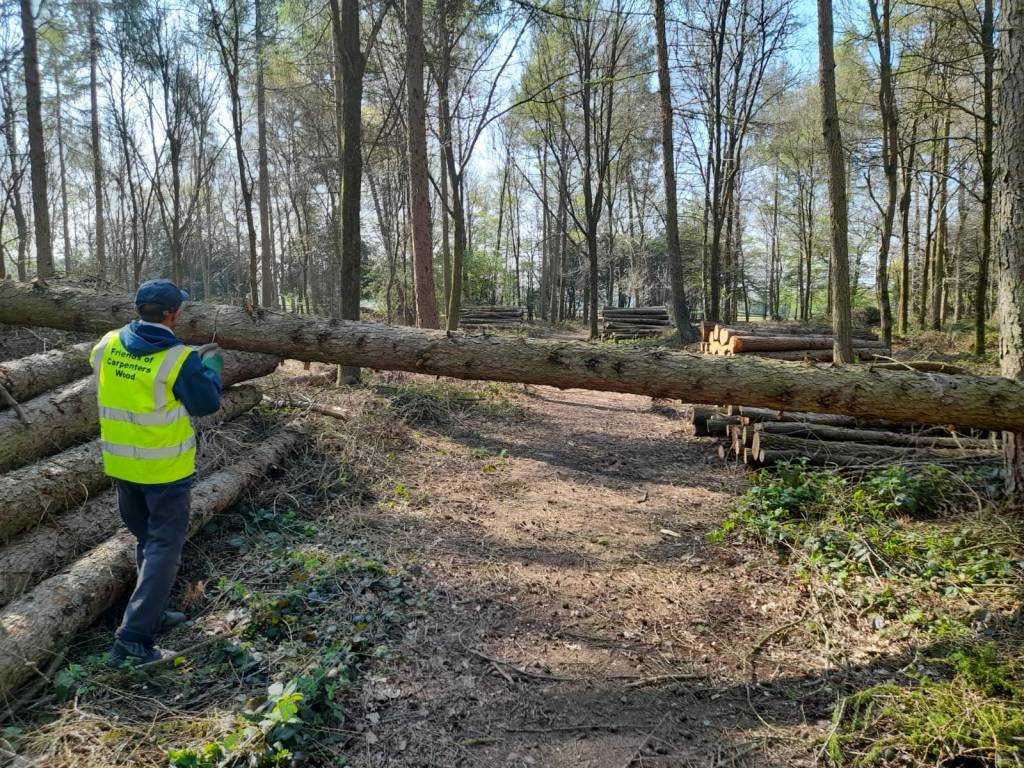 In February, strong winds brought down quite a few trees. Some of the larger ones were removed by contractors, but that still left many smaller ones for volunteers to clear up during February and March.