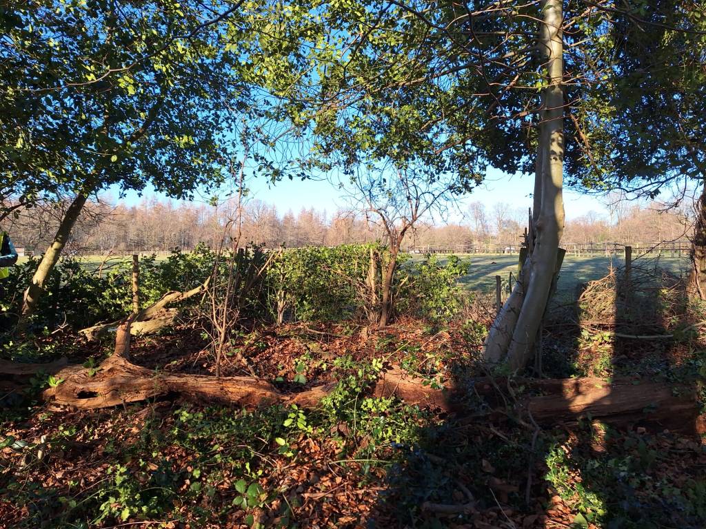 A crisp sunny day in December is a beautiful time to be working in the woods. This was our view over the Horse Field from where we were working on the holly.
