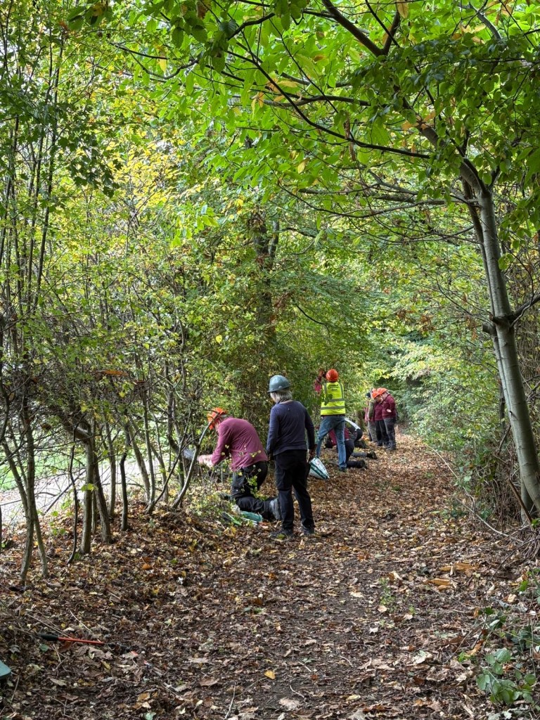 In October we had the sad task of removing some of the young ash trees by the Chiltern Way that were suffering from Ash Dieback. Some of these were so badly affected that they could be pulled up rather than needing to be sawn down. Being so near the path, this was an essential task as one could easily have fallen onto the path as someone was walking past.