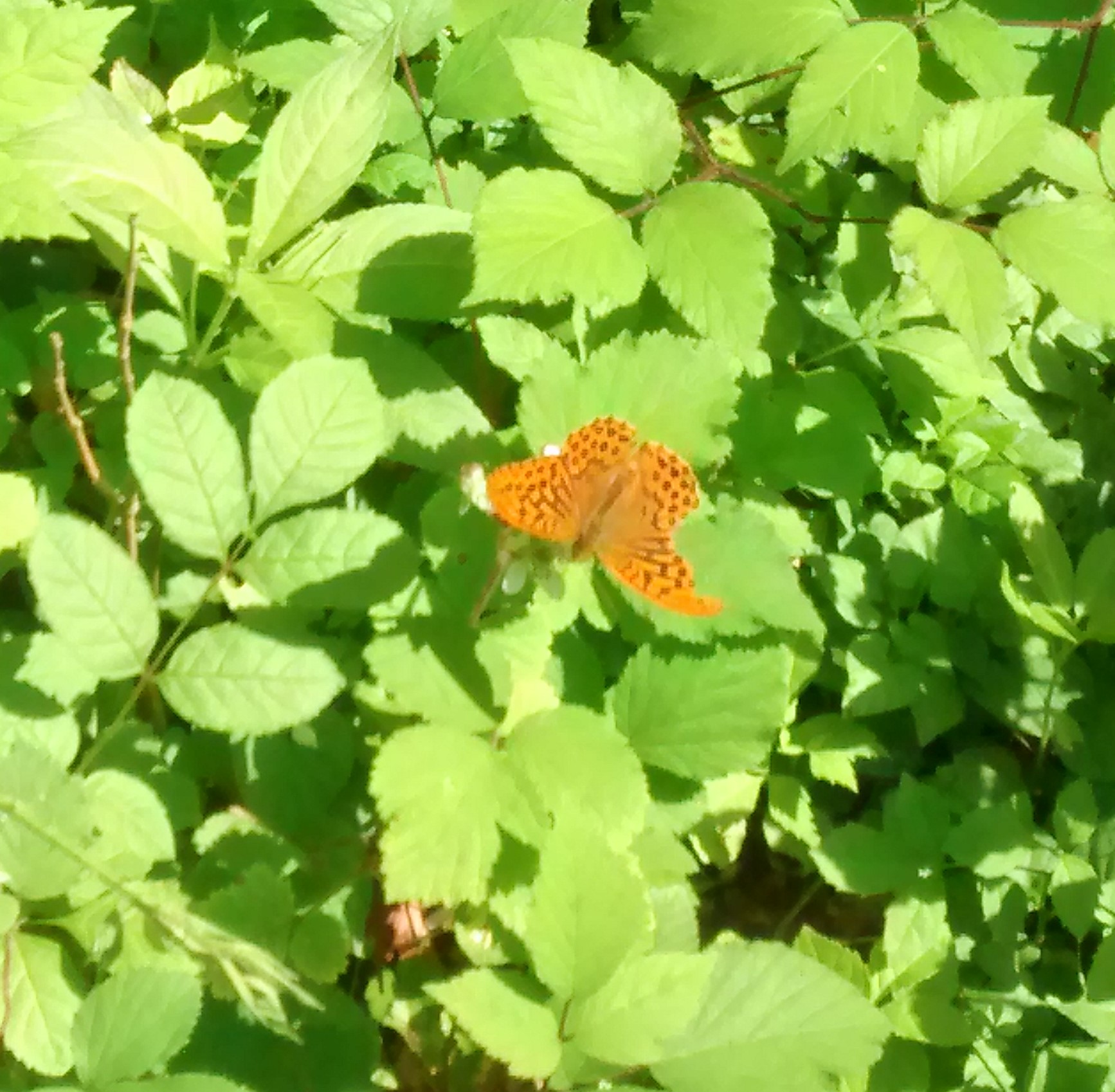 Silver-washed fritillary have been seen again in Carpenters Wood. The eggs are laid on tree trunks and in the Spring move down the tree to feed on Dog Violets which are plentiful in Carpenters Wood. The butterflies were seen settling on the flowers of brambles.