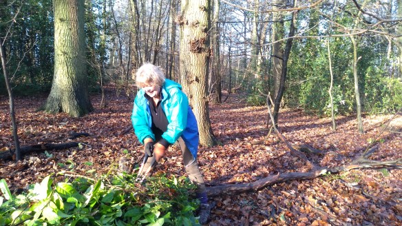 Despite a rather sudden and sharp downpour just before our session was due to start, 6 intrepid volunteers braved the mud and met for our last socially-distanced session of the year. The sun quickly appeared and lifted our spirits and spurred us into action tackling mainly invasive laurel that has been enjoying all the rain.